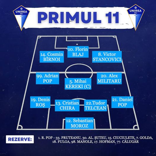 Primul 1⃣1⃣ în meciul CSM Reșița #UnireaDej #fotbal #football #Liga2 SURSA – Facebook Unirea Dej