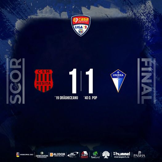 Pauză la Reșița. Gazdele au deschis scorul în minutul 19 prin Marian Drăghiceanu, dar Daniel Pop a reușit egalarea cu cinci minute înainte de a intra la vestiare. #UnireaDej #fotbal #football #Liga2 SURSA – Facebook Unirea Dej