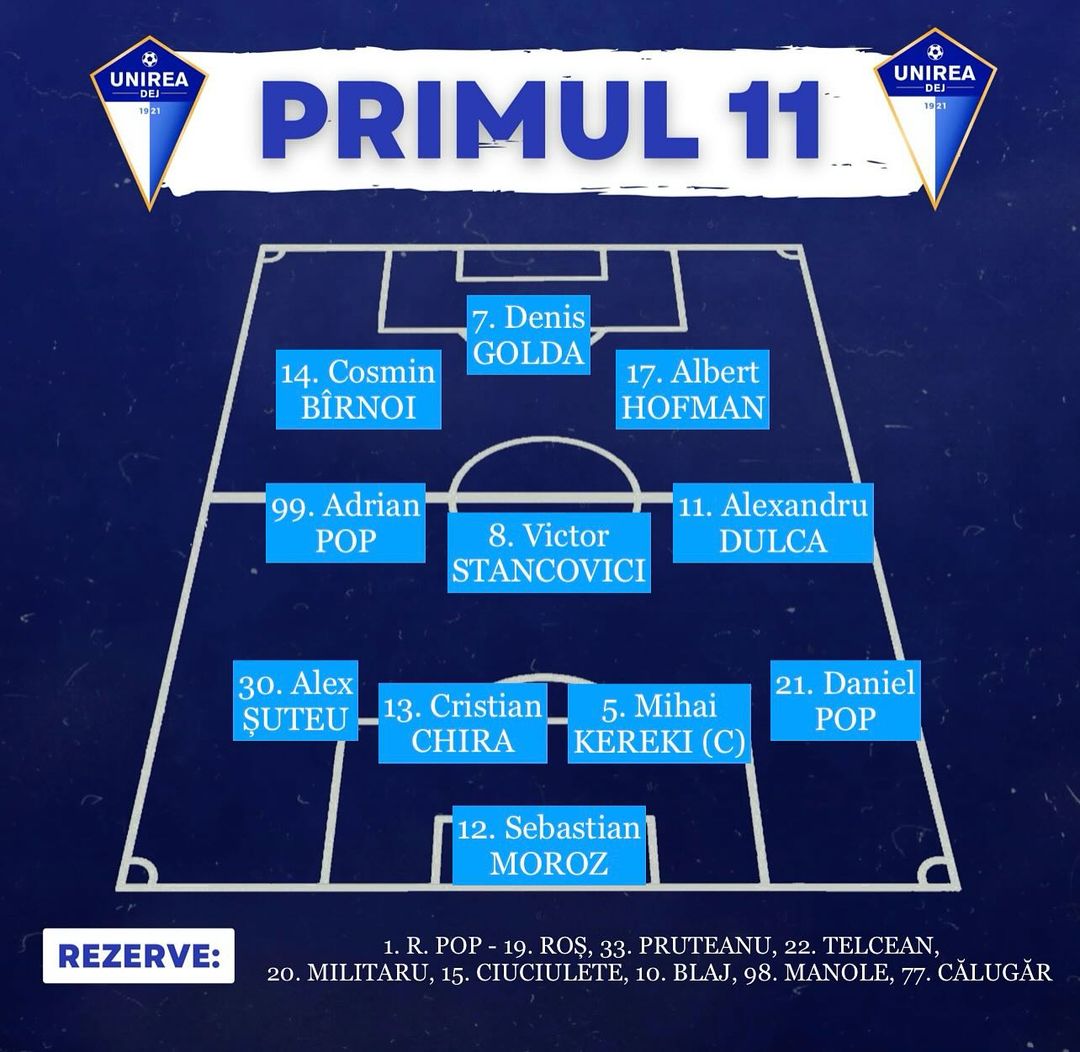 Primul 1⃣1⃣ în meciul CSM Alexandria #UnireaDej #fotbal #football #Liga2 SURSA – Facebook Unirea Dej