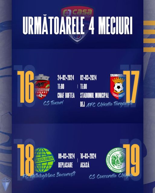 Jocul CS Tunari, primul oficial din 2024, va avea loc sâmbătă, 24 februarie, de la ora 11:00, în timp ce partida de ”acasă” din etapa a 17-a AFC Chindia Târgoviște este programată sâmbătă, 2 martie, tot de la ora 11:00. #UnireaDej #Liga2 #fotbal #football SURSA – Facebook Unirea Dej