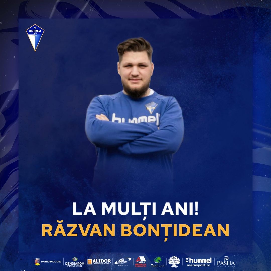 Astăzi își sărbătorește ziua de naștere kinetoterapeutul echipei noastre Răzvan Bonțidean. La mulți ani sănătoși, Bonți! #UnireaDej #Liga2 #fotbal #football SURSA – Facebook Unirea Dej