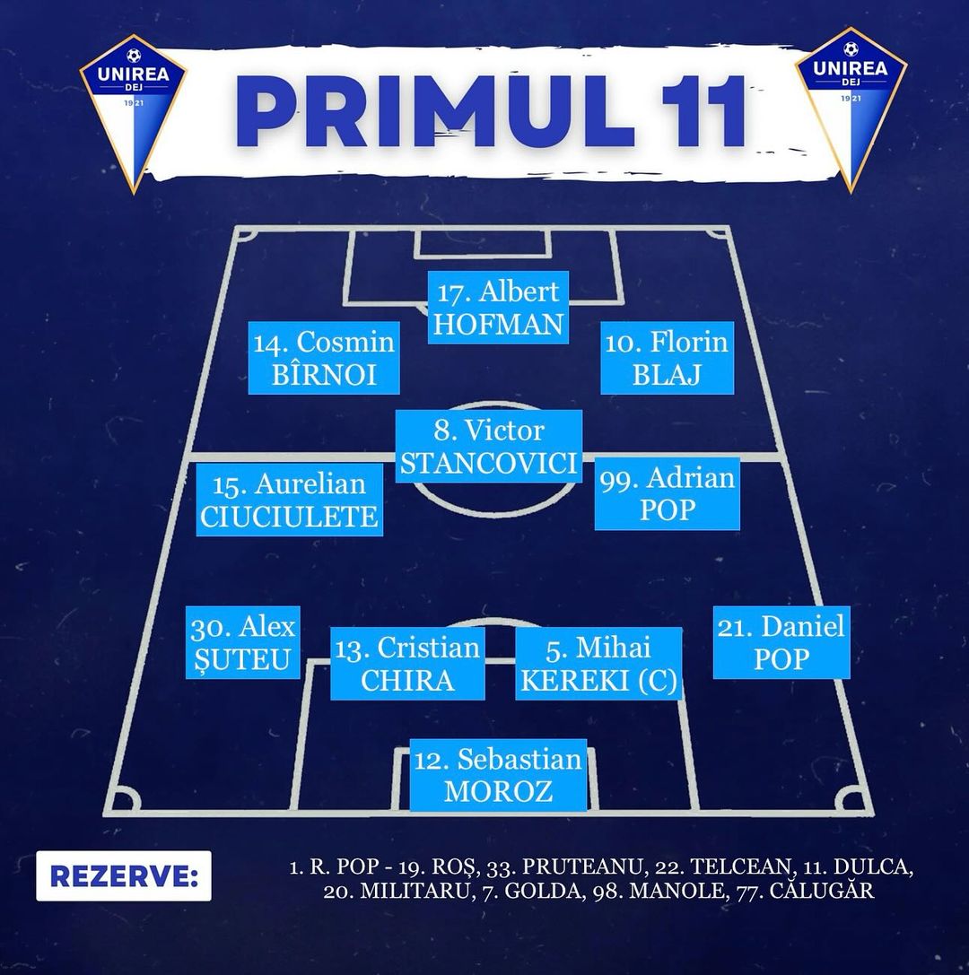 Primul 1⃣1⃣ în meciul @fcarges1953 #UnireaDej #fotbal #football #Liga2 SURSA – Facebook Unirea Dej