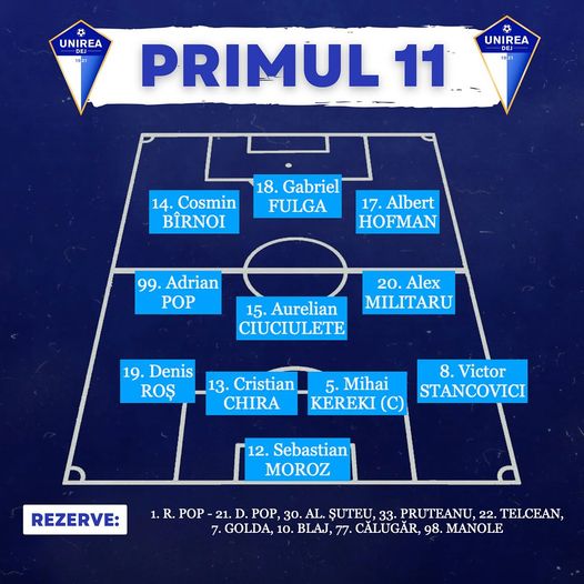 Primul 1⃣1⃣ în meciul CSC Dumbrăvița #UnireaDej #fotbal #football #Liga2 SURSA – Facebook Unirea Dej