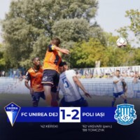 Echipa noastră a fost învinsă, scor 1-2, de Politehnica Iași, în a treia etapă din Liga 2. Meciul s-a disputat astăzi, de la ora 11, pe Stadionul Municipal Dej.
